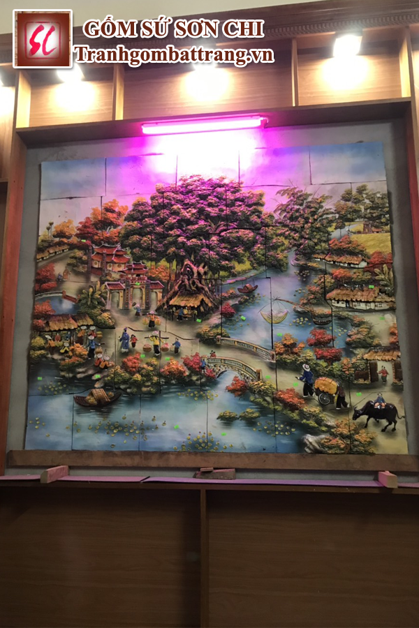 Tranh gốm Bát Tràng cảnh làng quê là 1 bức tranh dành tặng cho những người con xa xứ, nhớ về làng quê ngày nào để tìm lại chút khoảng khắc thân thương trong ký ức sau những thời gian bộn bề với cuộc sống