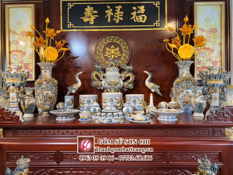 Bộ đồ thờ gốm sứ Bát Tràng đặt bàn thờ mẫu 07Bộ đồ thờ gốm sứ Bát Tràng đặt bàn thờ mẫu 07Bộ đồ thờ Bát Tràng là bộ đồ thờ bằng gốm sứ cho bàn thờ gia tiên, bàn thờ thổ công, bàn thờ thần tài – thổ địa, bàn thờ phật…