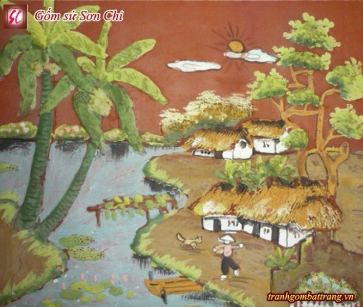 ![]() Tranh Gốm Bát Tràng cảnh làng quê